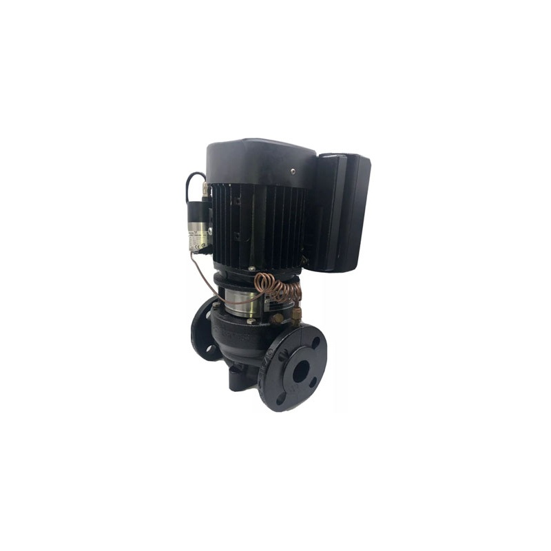 Bomba en línea simple de rotor seco equipada con un cierre mecánico no balanceado según EN 12756 y accionadas por un motor asíncrono según IEC 60034